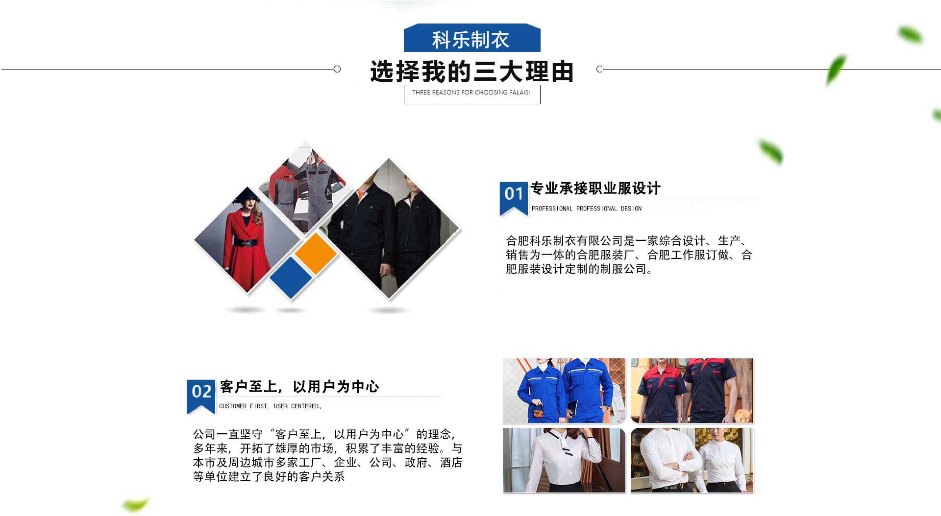 合肥科樂(lè)制衣有限公司是一家綜合設(shè)計(jì)、生產(chǎn)、銷(xiāo)售為一體的合肥服裝廠(chǎng)、合肥工作服訂做、合肥服裝設(shè)計(jì)定制的制服公司,專(zhuān)業(yè)承接賓館、酒店、機(jī)關(guān)、工廠(chǎng)、學(xué)校等企事業(yè)單位高中檔職業(yè)服設(shè)計(jì)、訂做。